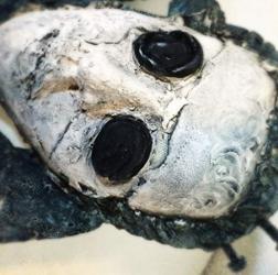This is piece can also function as a bowl. It’s definitely reads as an eccentric man. You won’t be able to tear your eyes away from this slightly macabre piece.