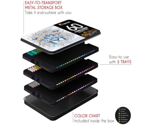 Can you even name 168 colors? Likely not. You literally get every color of the rainbow in this set. You’ll have hours of drawing or coloring with this set. Fluorescent and metallic pencils included!